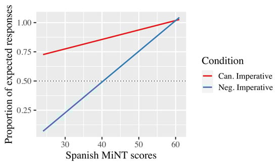 Figure 4. Spanish MiNT scores effects on the heritage speakers’ EPT responses across conditions.