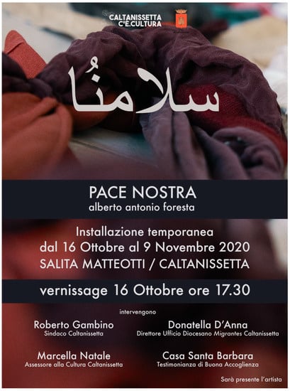 - Barba, Roberta. 2020. “Pace Nostra”: Una drammatica onda di pace e speranza che parte da Caltanissetta. Il Fatto Nisseno. October 20. Available online: https://www.ilfattonisseno.it/2020/10/pace-nostra-una-drammatica-onda-di-pace-e-speranza-che-parte-da-caltanissetta/ (accessed on 25 October 2020).