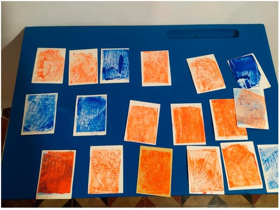During the exhibition, each group of visitors was invited to print hands and hearts on tetrapak, a simple technique shown by the collective members (see visitors’ artistic creations in Figure 9), they were also asked to choose a favourite place in the city and to write a personal thought to be included in the new city map. The interactive nature of the exhibition, resulting from the collaboration between migrant artists and the audience, was maintained to the very end with a walk through the city during which viewers’ prints were posted to Ragusa citizens’ mailboxes.