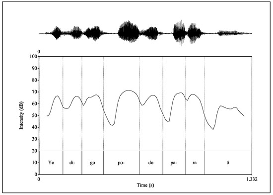 Intensity curve of the phrase ‘Yo digo podo para ti’ ‘I say ‘I prune’ for you’.