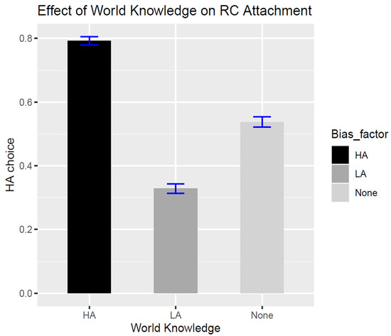 Prediction 2: We anticipate a similar effect of world knowledge on RC attachment resolution to that in Sokolova and Slabakova (2021): native and non-native speakers are sensitive to non-syntactic information in RC processing and attachment resolution.