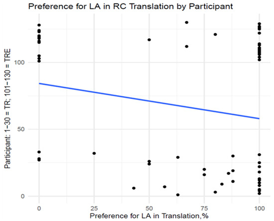 Prediction 3: We anticipate that the preferred pattern of RC resolution in either English or Russian is maintained in Tatar translations. We believe that translation per se requires the transfer of meaning from one language into another. Therefore, a sentence will be translated into Tatar the way it was understood in the source language, i.e., reflecting the preference for HA in Russian and for LA in English.