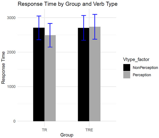 Effect of the type of the matrix verb on the response time in each group, TR and TRE.