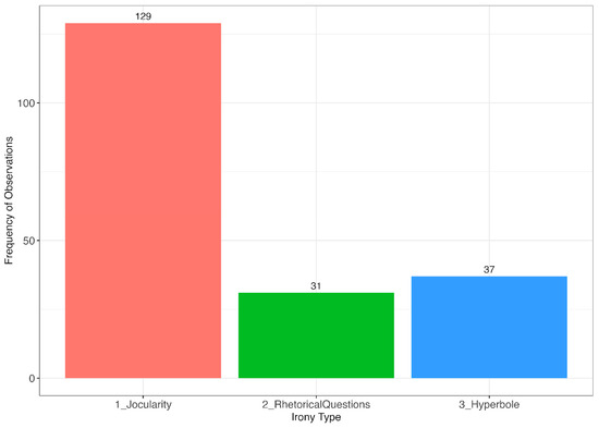 - Which of the subtypes of irony (jocularity, rhetorical questions, hyperbole, understatements, and sarcasm) occur in our Chilean Spanish data?