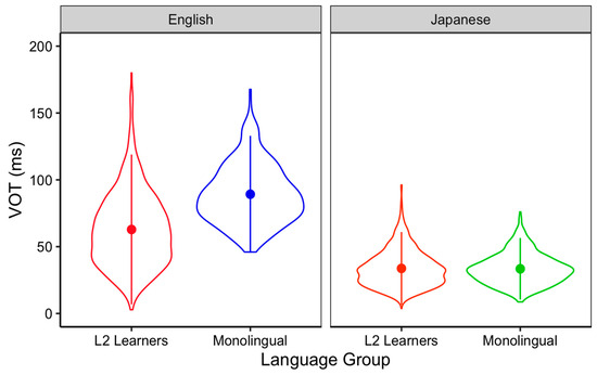 In terms of L2 influence on L1, whether L1 Japanese VOT production and perception would be modified in some way would depend on the type and strength of the association L1-L2 VOTs hold for the voiceless stops. If the association between the L1 Japanese and L2 English VOTs is strong, learning L2 English (with more exposure and use) might influence L1 Japanese VOTs to be more English-like, both in production and perception. However, if L2 learners try to separate them, the distance between L1-L2 VOTs might become greater (e.g., exhibiting a perceptual voicing boundary at shorter VOT values than monolingual Japanese speakers or producing shorter VOTs in L1 Japanese). While several studies have investigated Japanese VOT drift in early bilinguals (e.g., Harada 2003, 2007; Yusa et al. 2010), little research has been conducted on how late L2 learning influences L1 Japanese VOT drift in production or perception.
