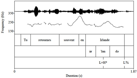 Example of L+H* L% for the question Tu retournes souvent en Irlande? ‘Do you go back to Ireland often?’ Participant 17.