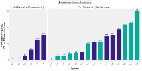 Experiencer constructions, on the other hand, have not been as extensively scrutinized as direct object marking; within heritage Estonian studies, this structure has not been previously investigated. Irizarri van Suchtelen (2014) examined the use of dative constructions (including experiencer constructions similar to the Estonian construction) among heritage Spanish speakers in the Netherlands. A comparison between first generation bilinguals and heritage speakers revealed that the former resembled monolingual L1 speakers in their use of datives. Heritage speakers, on the other hand, diverged from the L1 usage. Furthermore, Irizarri van Suchtelen reports that the construction is subject to innovation among bilinguals due to cross-linguistic influence from Dutch. Innovations include the restructuring of canonical datives and the avoidance of optional dative constructions. Another study observing five dative constructions (involving give-events) on the example of Ambon Malay heritage speakers in the Netherlands (Moro and Klamer 2015, p. 263) found that “a change in frequency of certain constructions” can lead to higher rates of innovative give-constructions. In turn, this frequency change is intertwined with other factors—cross-linguistic influence and the path of HL acquisition—that drive the use of divergent forms. For example, speakers who grew up with limited Ambon Malay input tended to substitute ‘two predicate’ constructions with a single verbal predicate and display a much higher incidence of double object constructions than homeland speakers. Teasing apart the influence of various influential factors is difficult, particularly when the heritage language has more complex morphology than the societal language.