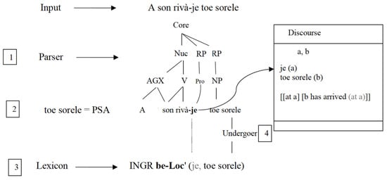 In this article, we examine first-hand Turinese and Milanese evidence collected in loco with questionnaire-assisted interviews. We claim that the microvariation in the presentational constructions of the two dialects resides at the interfaces that are involved in sentence parsing. We frame our account in terms of Van Valin’s (2023, pp. 123–25) syntax–semantics linking algorithm, which is an idealization of the hearer’s perspective in linguistic communication. The presentational clitic can be understood as a locative argument of a verb of motion, in which case it is linked from syntax to a position in the semantic representation of the clause. Alternatively, the clitic indexes the discourse situation and is directly linked from syntax to discourse. This latter interpretation is not restricted to presentational constructions with verbs of motion. To capture the variation attested in Turinese (cf. 3 and 4), we advance the hypothesis that a new process of grammaticalization is under way, where referential, i.e., locative, je, which was never ousted from the system, is being reanalysed for a second time. As a result of the reanalysis, je becomes an index of the aboutness topic of the utterance, which is the discourse situation.