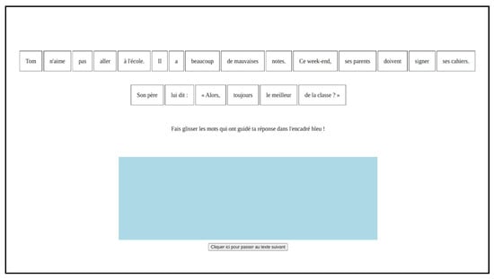Both the children and the adults were asked to carefully read the short texts and answer questions about them. Then, they were asked to drag and drop segments from the text that helped them answer the questions (Figure 1). The experiment lasted around 20 min for the adults and between 20 and 30 min for the children.