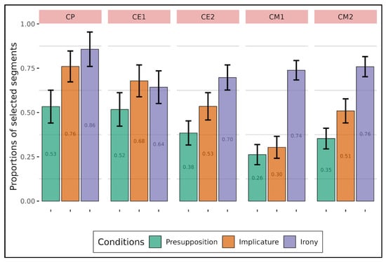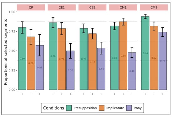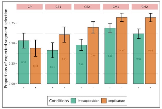 Proportions of expected segment selection depending on types of implicature (adults).