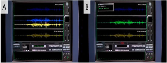 A visual evocative of a DNA electropherogram where “voice print” also appears. ((A) Without a trace S02E22T05:39; (B) Without a trace S01E18T29:45).