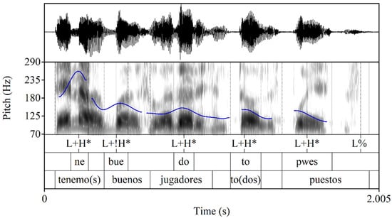 Intonational contour of a PAS utterance. Tenemos buenos jugadores en todos los puestos (‘We have good players in all positions (on the field)’).