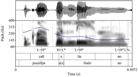 Intonational contour of a PAS utterance. Pucallpa es lindo, ¿no? (‘Pucallpa is beautiful, isn’t it?’).