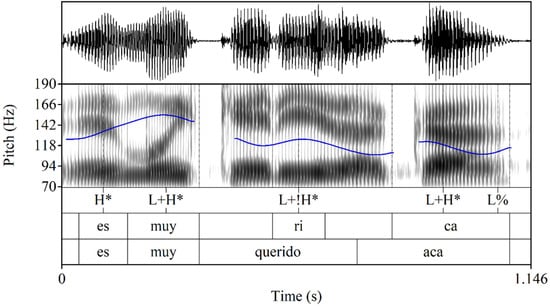 Intonational contour of a PAS utterance. Es muy querido acá (‘It is very loved here’).