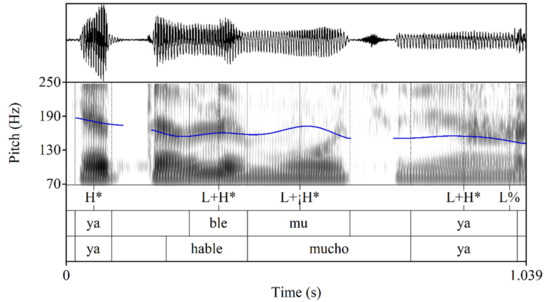 Intonational contour of a PAS utterance. Ya te hablé mucho ya (‘I already told you a lot’).
