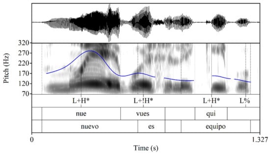 Part of an intonational contour of a PAS utterance. Nuevo es el equipo… (‘The team is new…’).