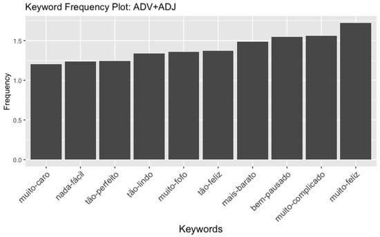 | 4 | The code used for the extraction of RAKE returned some strings that were not pairs of ADV+ADJ, such as in nem precisas, já devia, and nunca parar. We manually filtered out those cases and plotted only the ones that matched the search. |