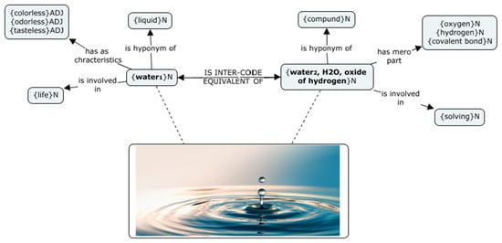 Figure 13. {water1}N common synset and {water2, H2O, oxide of hydrogen}2N specialized synset from the chemistry domain, including the representation of their potential referent (image).