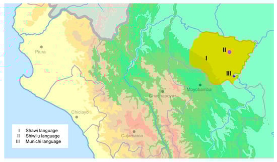 The Shawi speaking area within Peru. Within the area, two other languages are spoken, namely, Shiwilu, also known as Jebero, and Munichi, a language isolate. Although Munichi is not a Kawapanan language, it has undergone prolonged contact dynamics with Kawapanan languages.