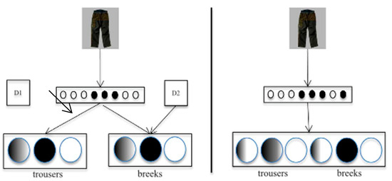 Melinger (2018) tested these assumptions by investigating whether the lexical selection of Scots and the Scottish Standard English bidialectal speakers is different from that of bilingual speakers using the picture–word interference paradigm. The study predicted a co-dependent representation of dialect words as opposed to the independent representation of words of bilingual speakers. Figure 1 illustrates the hypothesized representations of dialect words. Melinger (2018) predicted that bidialectal speakers have the co-dependent representation depicted in the right frame, not the independent representation in the left frame. According to Melinger, if the representation of dialect words is independent, like the representation of the words of bilinguals, dialect words must be independently organized via their association with the dialect membership tag (D1 and D2 in the left frame). In the independent representation, each dialect has its own basket, and only the representation of the target dialect is activated without significant interference from the representation of the non-target dialect. The selection of the target word is achieved via the dialect membership tag. However, if the representation of dialect words is co-dependent, words from both dialects must be accommodated by a single representation (the right frame in Figure 1). The latter prediction assumes that dialect equivalents are distinguished by their conceptual-level features, not by the independent representations. According to Melinger (2018), the conceptual features are not able to inhibit interference between dialect equivalents since there is no perfect matching between the features. Hence, the lexical organization on the left (see Figure 1) accounts for the facilitation effect of dialect equivalents, while the organization on the right does not. Data from the Scots and the Standard Scottish English bidialectal speakers confirmed the co-dependent representation; hence, Melinger (2018) concluded that the lexical representation of bidialectal speakers is different from the representation of the words of bilingual speakers.