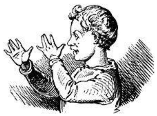 As for gesture 5, the back-and-forth movement of the fingers simulates the movement of large ears, like the ears of a donkey, an animal that symbolizes the lack of intelligence. This is a gesture that was already documented in Roman times with the value of mockery since in ancient Greece and Rome the donkey was considered to have defects such as stupidity, laziness, and obstinacy (Fornés and Puig 2005).