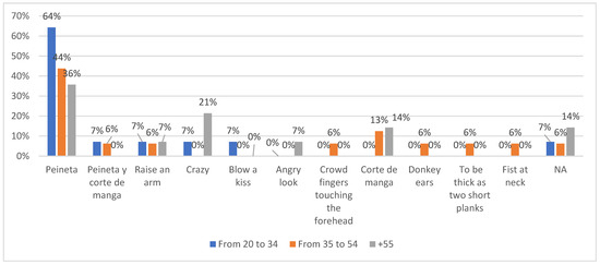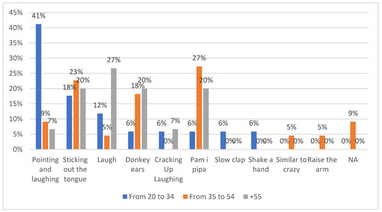 Figure 4 displays the distribution of mocking gestures among the interviewed Barcelonians categorized by the age groups considered in this study.