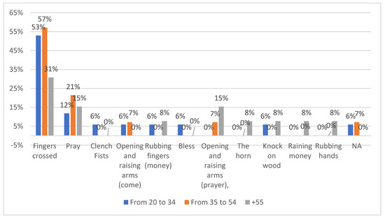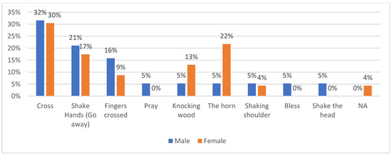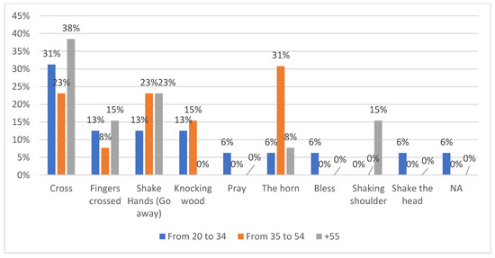 Appendix A.4. Repertoire of Gestures to Ward Off Bad Luck