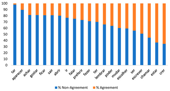 Rates of (non)agreement by verb.