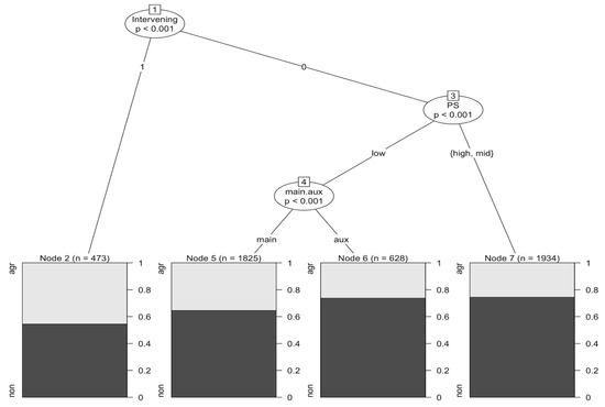 Conditional inference tree showing interactions between significant factors.