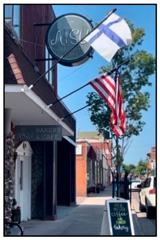 Hancock, Michigan, is home to the Finnish American Heritage Center and Finnish American Folk Art School, serving as focal points for Finnish cultural preservation. Until May 2023, Hancock was also home to Finlandia University, previously known as Suomi College. According to the university’s website, Finlandia was recognized as the sole surviving university established by Finnish immigrants still operational in North America. Not only did the community face the closure of the university, but, shortly thereafter, Kaleva Cafe, a renowned Finnish American gathering spot serving traditional foods, also closed its doors after over a century of operation. A few years earlier, there was also the closure of Kukkakauppa, a flower shop located on the main street of downtown Hancock, which happened to be the same street where the Finlandia University and Kaleva Cafe were located. These closures sparked concerns about the future of Finnish American culture in the community. However, they also paved the way for change and the emergence of new ventures that embrace Finnish heritage in contemporary ways. In 2023, Ilo, an arts and craft store named after the Finnish word for “joy” or “happiness”, opened its doors. Shortly after, Nisu Bakery and Café (see Figure 2), a coffee shop featuring traditional Finnish and Finnish American products, became another Finnish-influenced establishment in the area. Opened also in 2023, Kuusi “Spruce” Mercantile is yet another example of a new Finnish-inspired business. Lastly, Kukkakauppa’s name changed to The Flower Shop, still featuring Finnish items despite a change in ownership.