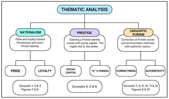 Thematic analysis diagram of attitudes and ideologies toward Finnishness.