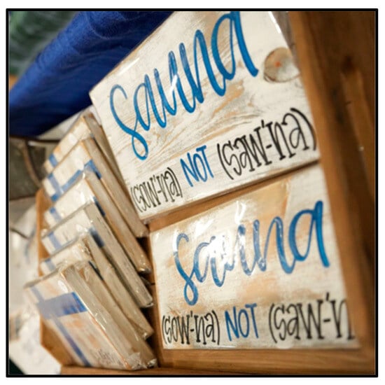 In Hancock and neighboring towns, Finnish culture is prominent. Finnish influence is evident everywhere, from the abundance of cars with Finnish license plates to the use of Finnish business names and Hancock’s bilingual Finnish and English street signs. Personal expressions of Finnishness, such as Finnish-themed clothing, car accessories (see