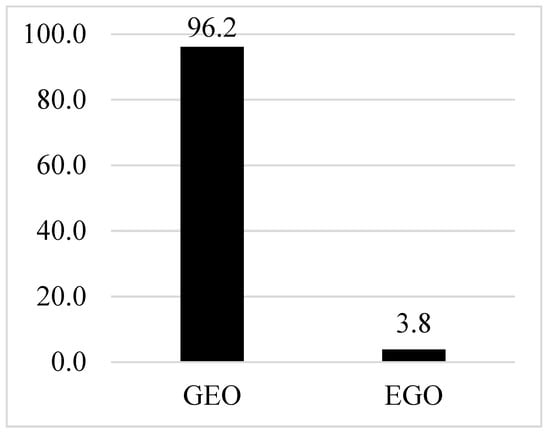 Overall, participants were in agreement in the task and did complete it successfully with only a few mistakes (such as switching cars, for instance). Results by community are shown in Figure 12. Clearly, the vast majority of participants relied on the geocentric FoR, with few results based on the egocentric FoR. It is to be noted that none of the participants fully relied on the egocentric FoR, and we might attribute these results to their unfamiliarity with the task. Due to the reduced number of participants, results from Trascorral seem to present more variation, but this is due to only one participant who chose each FoR half of the time.