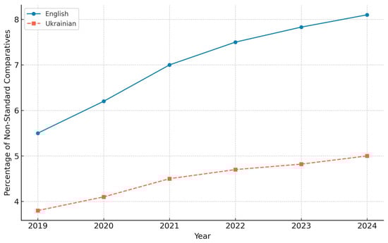 Trends in non-standard comparative usage (2019–2024).