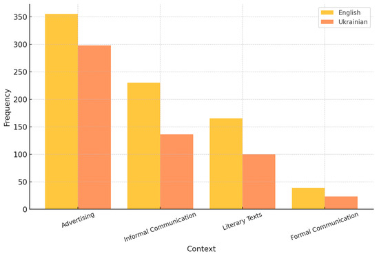 A visual comparison of the data is presented in Figure 2, illustrating the differences in frequency across the examined contexts for both languages.