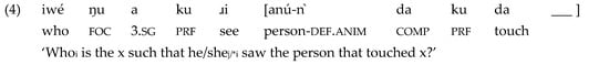 I argue that definite relative clauses, despite their stable strong island status cross-linguistically, lack island status in Adara. The structure is neither selective nor weak, but rather completely permeable, allowing the free extraction of both arguments and adjuncts. In support of the claim [...] Read more.