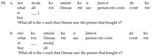 I argue that definite relative clauses, despite their stable strong island status cross-linguistically, lack island status in Adara. The structure is neither selective nor weak, but rather completely permeable, allowing the free extraction of both arguments and adjuncts. In support of the claim that A-bar movement may escape relative clause domains in Adara, I adduce evidence from crossover effects, reconstruction effects, and quantifier float. In addition, I show that relative clause-internal material may probe upwards and outwards, triggering long-distance agreement of relativized verbs with clause-external subjects in a way that is not possible with true island structures in the language. Full article