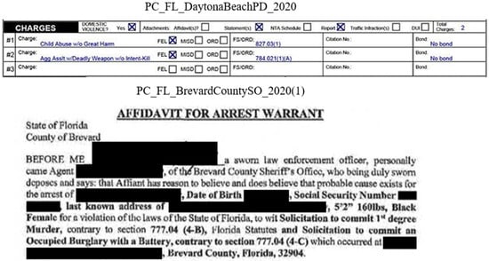 The data presented in this study (i.e., extracts from probable cause affidavits written by American police officers) are available at http://www.thesmokinggun.com/documents, (accessed on 9 January 2021).