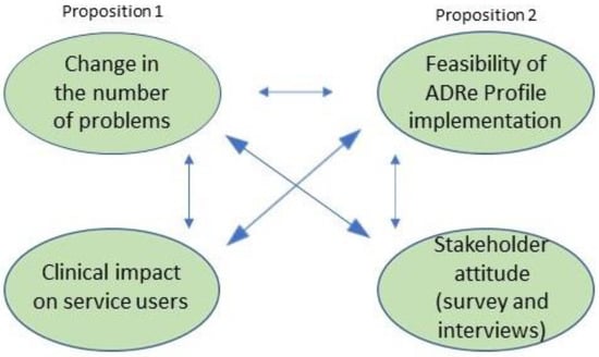 The ADRe Profile is designed to monitor the full range of patients’ problems, including those (individually or in combinations) potentially leading to increased morbidity and mortality. These indicators are not easily detected by outcome measures such as (re)-hospitalisation rates, and there is no single measure that would adequately reflect the impact of ADRs. The effects of ADRe Profile implementation will be evaluated at individual participant level. The primary objective of this study is to explore whether the ADRe Profile identifies health problems that could be ameliorated, and record any changes to care, benefits or harms to the patients. The problems identified will be represented by the ADRe item responses that signify a clinical problem, undesirable state or suboptimal use of medicines. The problems addressed will be defined as problems where any action was taken following the problem identification (for example, medicine changes, health promotion, referral to a specialist, or other members of the multidisciplinary team). The associated outcome measures have been categorised into effectiveness and process and costs evaluation categories, but it is acknowledged that there is an unavoidable overlap:
