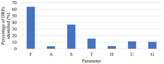 An average of 5.15 DRPs was detected for each patient monitored with the protocol, with a total of 103. Those problems were classified using the Hepler–Strand DRP classification system, adding a new category for pharmaceutical failure and improper route selection, as shown in Figure 3. Most of the DRPs were related to the parameter of Feeding (n = 22), Glucose control (n = 12), and Hyper or Hypoactive delirium (n = 10).