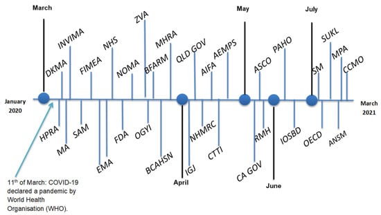 Due to the urgent nature of the pandemic, the majority of included publications were published during the months of March and April 2020 which was foreseeable as COVID-19 was declared a pandemic by WHO on 11 March 2020 []. The earliest guidance was published 24–48 h following the declaration, by the UK Health Research Authority (NHS) [], the Danish Medicines Agency (DKMA) [], and Ireland’s HPRA []. This systematic review demonstrates that guidance differed in the breadth of topics covered regarding different aspects of clinical research depending on the date it was published, showing that guidance published earlier in the pandemic was not as comprehensive, compared to guidance published in the second-half of 2020. Furthermore, recommendations published 24 h to two weeks following the declaration, such as guidance from the NHS [] and BFARM [] did not include recommendations regarding IMP delivery, risk-benefit assessment, contingency planning, and monitoring, which were commonly identified domains in recommendations published later on, as the pandemic evolved. In fact, guidance released by these organisations during the early stages of the pandemic did not provide any recommendations regarding the continuity of trials, possibly due to the uncertain nature of the pandemic. Moreover, early recommendations by BFARM [], OGYI [] and HPRA published in March 2020, discouraged any recruitment of participants. This can be placed in comparison to guidance published a month later, such as recommendations by the Australian NHMRC [] and the US Clinical Trials Transformation Initiative [], which made a broader range of recommendations, in general, and did not advise against continuity of research or recruitment of participants, so long as risk mitigation strategies were put in place. These are important findings for researchers planning future projects, as many granting bodies require researchers to provide details surrounding risk assessment and mitigation. Throughout the last two years of the pandemic, the spread of COVID-19 has drastically increased in some countries, whereby changes to virology have necessitated an evolution of attitudes and government policies. Similar to experiences in the education sector [], the initial guidance identified in this review was ‘emergency-based’, but as time went on, researchers had to shift their mindframe from that of halting or pausing research early on in the pandemic, to finding ways to safely ensure the continuation of research, once it became evident that the pandemic was unlikely to be a short-lived disruption. As the response to the pandemic evolved with the development of COVID-19 vaccines and their rollout, this also presented barriers to researchers’ ability to physically return to workplaces and guidance surrounding the conduct of clinical research. Therefore, it is imperative to not only monitor how guidance changes, but also ensure that guidance reflects the changing values and pandemic environment, worldwide.