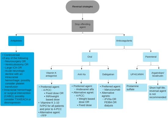 - Holzmacher, J.L.; Sarani, B. Indications and Methods of Anticoagulation Reversal. Surg. Clin. North Am. 2017, 97, 1291–1305. [Google Scholar] [CrossRef] [PubMed]