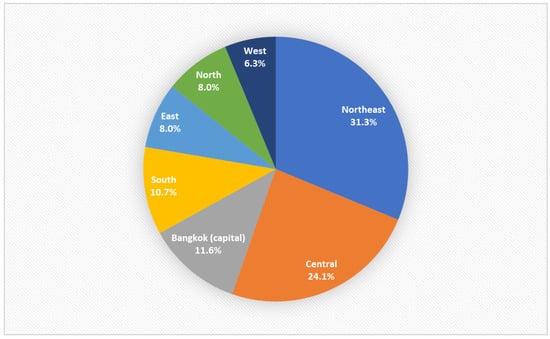Patient demographic data are presented in Table 1. Most patients (59.8%) were women. The median patient age was 50.5 years old (range, 15–99 years). There were more adult patients aged <65 years than older patients in our study. MEs were most commonly reported in the northeast region of Thailand (Figure 1). Most MEs occurred during the afternoon shift (58; 51.8%) and were most frequently in an outpatient department (65.2%). Errors in the medication process, such as prescribing or dispensing, were not recorded in our database; therefore, these data were not included in this study.
