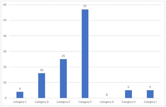 Figure 2 demonstrates the patient’s category of error. ME category F occurred most frequently (50.9%). Of 112 patients, 5 patients (4.5%) were identified as ME category H, and 5 patients (4.5%) were identified as ME category I.