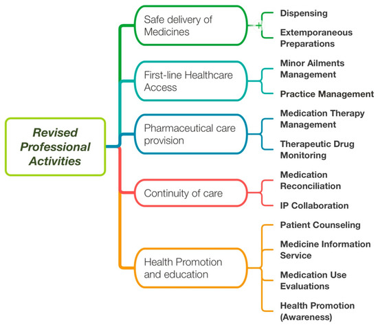 - Al-Haqan, A.; Smith, F.; Al-Taweel, D.; Bader, L.; Bates, I. Using a global systematic framework tool to guide the advancement of the pharmacy workforce education and training on a national level. Res. Soc. Adm. Pharm. 2021, 17, 1101–1109. [Google Scholar] [CrossRef]