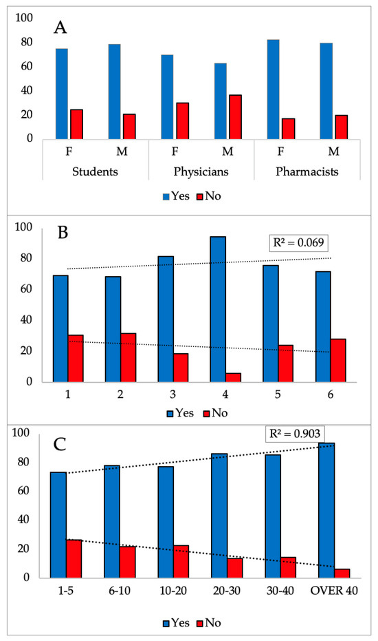 3.3. Results of the Questionnaire Presented Only for Physicians’ and Pharmacists’