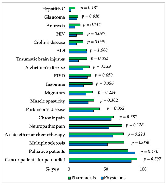 4.2. Specific Knowledge of CBD among Physicians and Pharmacists