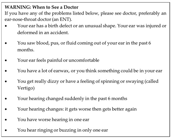 “Red flag” medical conditions from the FDA’s final rule establishing OTC hearing aids [3].
