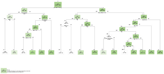 Another variable that the decision tree identified was age. Age was presented as a decision tree node in multiple nodes and was related to medication adherence predictions. Specifically, the lower age group exhibited a higher predictive Proportion of Days Covered (PDC) value, indicating better adherence. However, the relationship between age and adherence has yielded mixed results in various studies. For instance, a retrospective study by Habib et al. found a strong correlation between higher age, higher socioeconomic status, and improved adherence [27].
