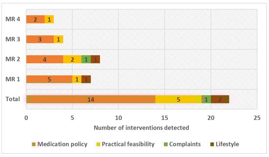 The number of interventions detected during the pharmacotherapeutic anamnesis of the pilot MRs.